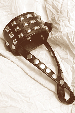 You're cutting edge when you wear your M2M finger loop wristband. Cool studs and hot leather make a man of taste, of supreme style. You look tuff, and he likes that about you.