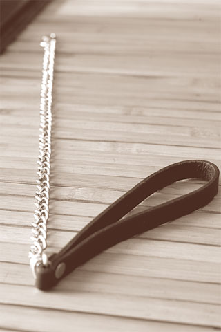 Doggie style takes on a new meaning with your M2M chain leash. Clip it onto any number of M2M products; lure him seductively into your arms and into your bed.