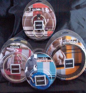Products stay put with M2M's tray-in-clam system. Sexy colors designate each product category, and we've taken the guesswork out of your customers' retail merchandising. Stripes like blue jay for leather c&b, virile vermilion for metal c&b and playful plum for sensory gear invite shoppers to take a closer look. From the box to the wall, M2M makes it easy for you and easy for your customers. That's the M2M commitment to service and to style.